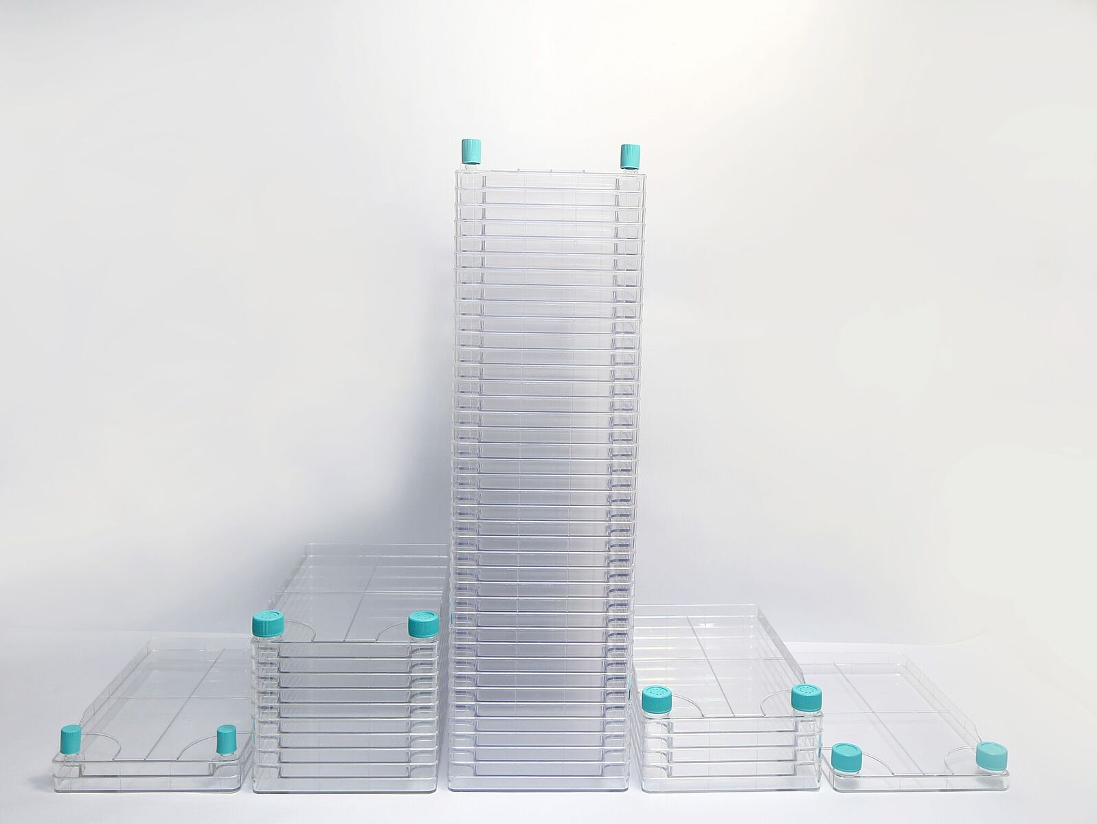 The BioFactory™ Systems are compact, multi-layer, single-use cell culture systems designed for easy scale-up cell culture applications, such as production of vaccines, monoclonal antibodies or pharmaceuticals. Versatile, easy-to-use systems for small scale research or commercial production with reduced contamination risk.Narrow mouth caps available for tubing solutions. Available in five sizes: