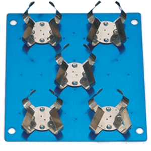 A standard, rubber mat platform is included and is ideal for use with tissue culture flasks, Petri dishes, staining trays and other flat vessels. The convenient MAGic Clamp™ platform is also available for use with Erlenmeyer flasks and test tube racks. The unique, magnetic attachment method (PATENTED) is the easiest way to instantly change between flask clamps of different sizes.