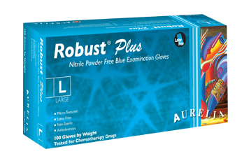 Aurelia® Robust Plus® Extended Cuff Blue Nitrile (Non Latex) Powder Free Examination Gloves are made from 100% Nitrile (Non Latex), ambidextrous, blue color, Finger Textured and non-sterile. Aurelia® gloves conform and are tested to the highest international standards.